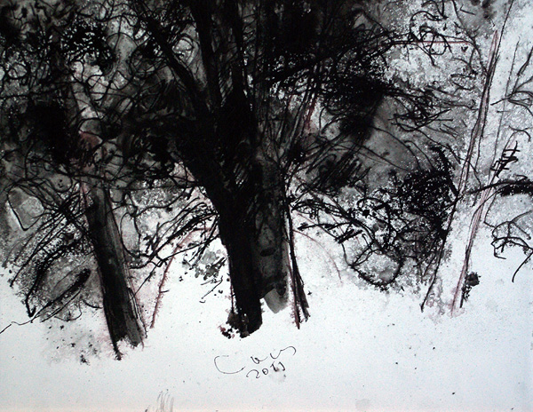 Veel van mijn inkt tekeningen komen snel tot stand. Soms à la minute. Door niet te denken worden mijn tekeningen krachtig. Vanzelfsprekend is dat niet.